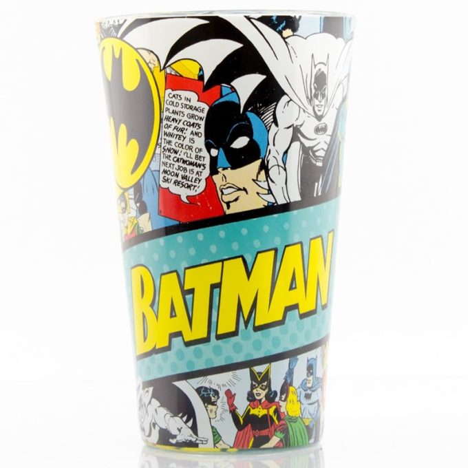 Batman Comics Comic Wrap Stort Glas är perfekt för mineralvatten, läsk, öl, drinkar eller andra uppfriskande drycker. Ta en paus och släck törsten. Passa samtidigt på att göra det med stil! Varför ha ett vanligt tråkigt glas när det finns såna här? En perfekt present eller gåva till alla fans av serien.