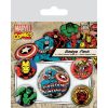 Marvel Retro Captain America Pin Button Badges Set passar som gåva eller present till fans av serien. Knapparna avbildar olika karaktärer i retrostil från Marvels serietidningar: Captain America, Iron Man, Incredible Hulk, Falcon och Daredevil.