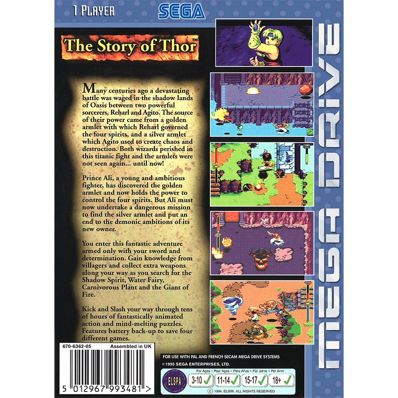 Story of Thor är även känt som sitt fulla namn The Story of Thor A Successor of The Light, eller sitt amerikanska namn Beyond Oasis. Spelet är den första delen i Story of Thor serien. Musik av Yuzo Koshiro.